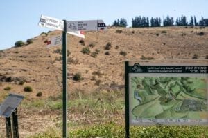 1.9 ק”מ השביל מגיע למגרש החניה של בית העלמין של יבניאל.