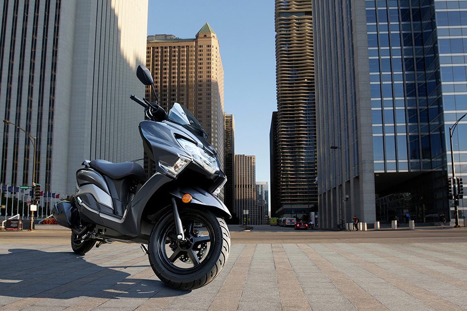 שילדה קלת משקל עם מתלים מכוונים עדין הופכת את ה-BURGMAN לקל לתמרון בתנועה בעיר ומבטיחה נוחות רכיבה מפוארת.